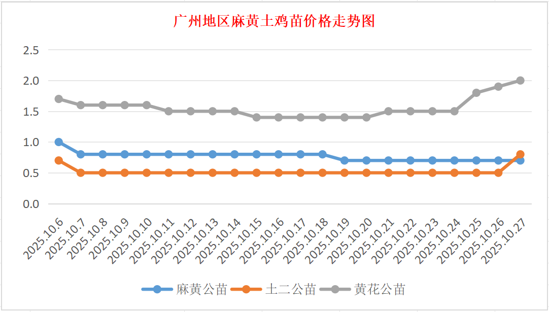 10月27日广州地区麻、黄、土鸡苗价格行情