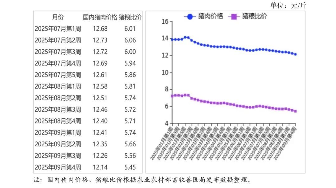 据国家发展改革委监测,9月份猪粮比价为5.89:1,比上月下降0.06个点。9月份全国饲用玉米价格为每公斤2.49元,环比跌0.4%,同比跌0.4%;育肥猪配合饲料价格为每公斤3.39元,环比持平,同比跌1.7%。