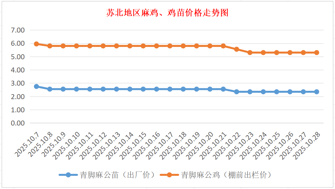 苏北地区麻鸡、鸡苗价格走势图(图源:鸡病专业网)