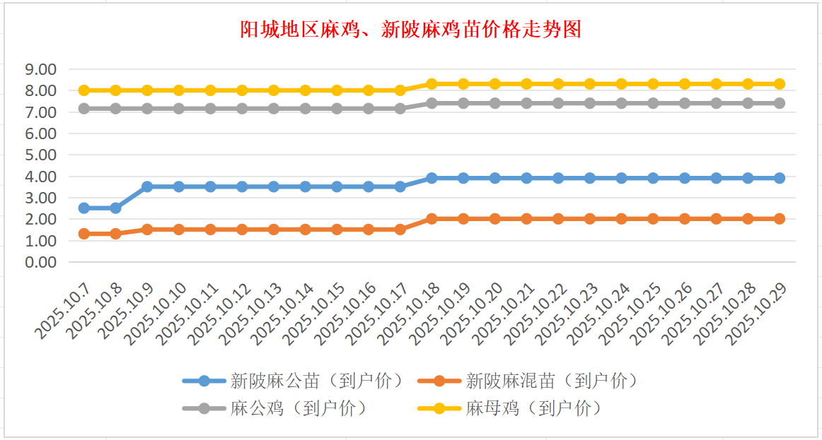 阳城地区麻鸡、新陂麻鸡苗价格走势图(来源:鸡病专业网)