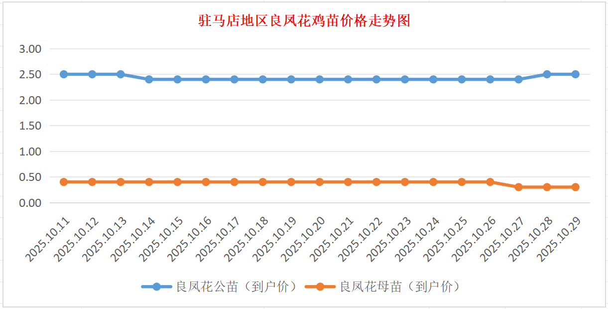 10月29日驻马店地区良凤花、岭南黄鸡苗价格行情