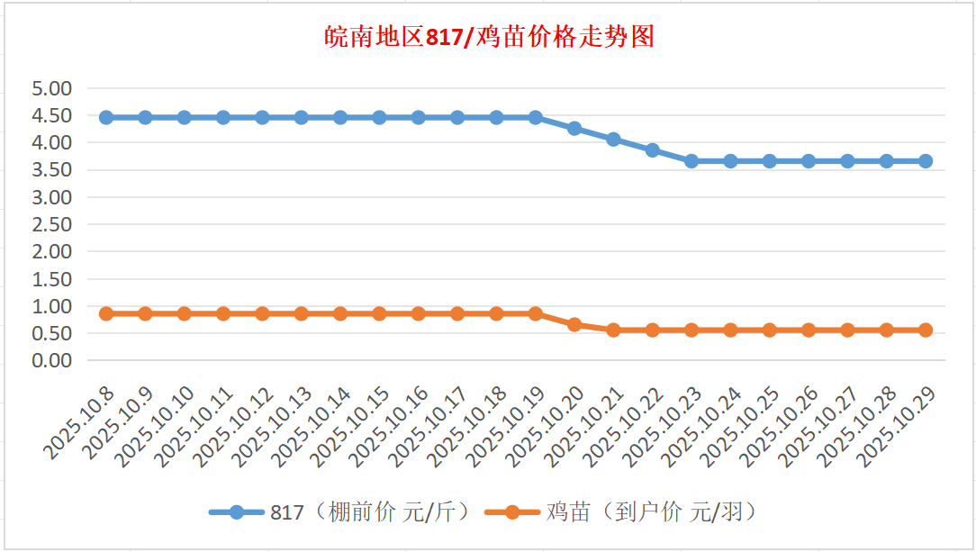 鸡病专业网独家信息:2025年10月29日皖南地区817-麻鸡行情最新走势