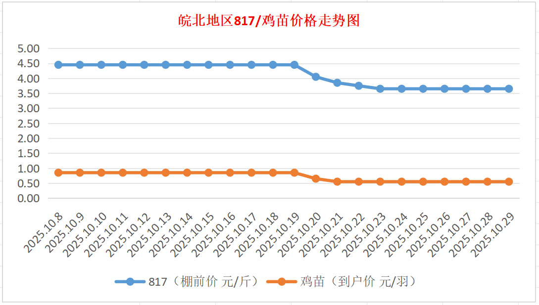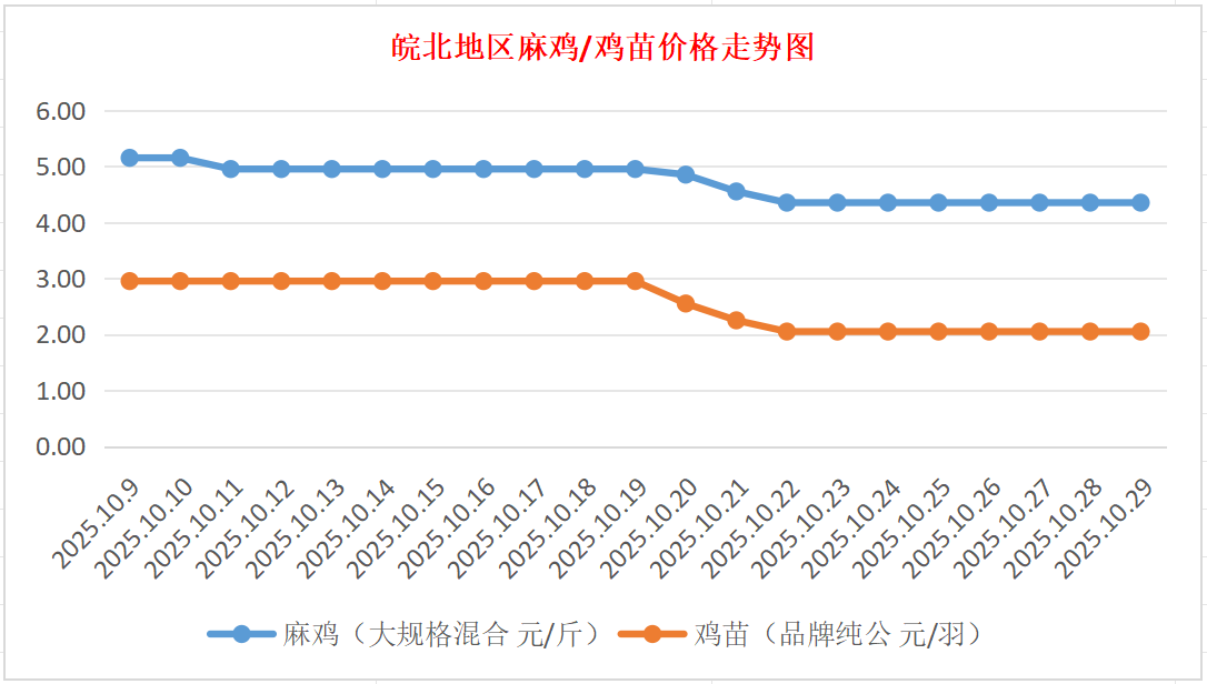 鸡病专业网独家信息:2025年10月29日皖北地区817-麻鸡行情最新走势
