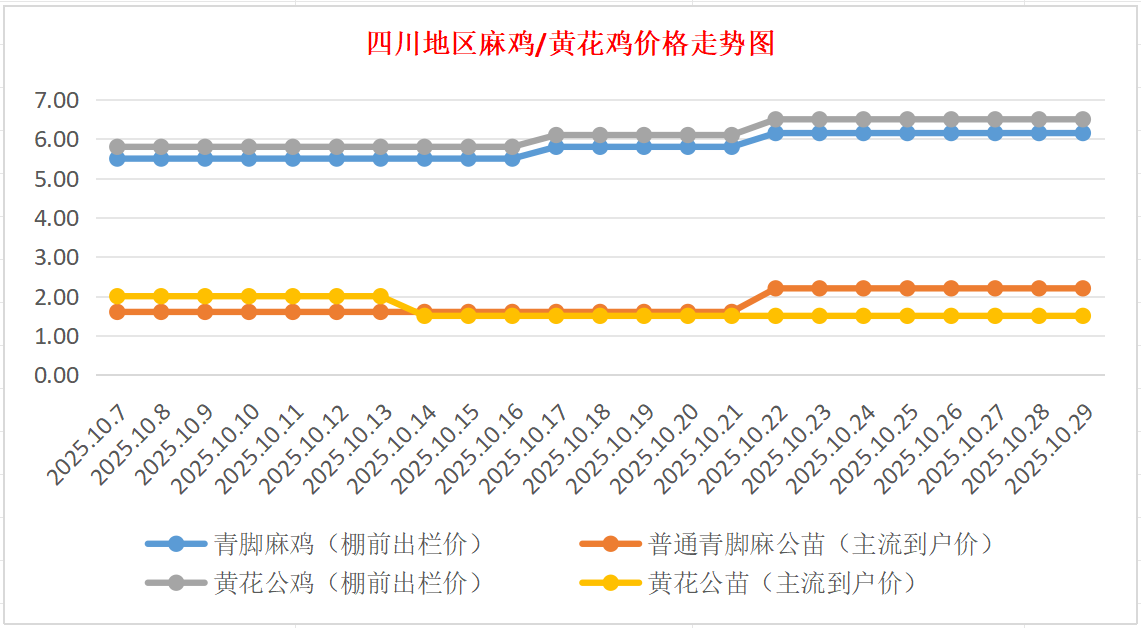 四川地区麻鸡/黄花公价格走势图(来源:鸡病专业网)
