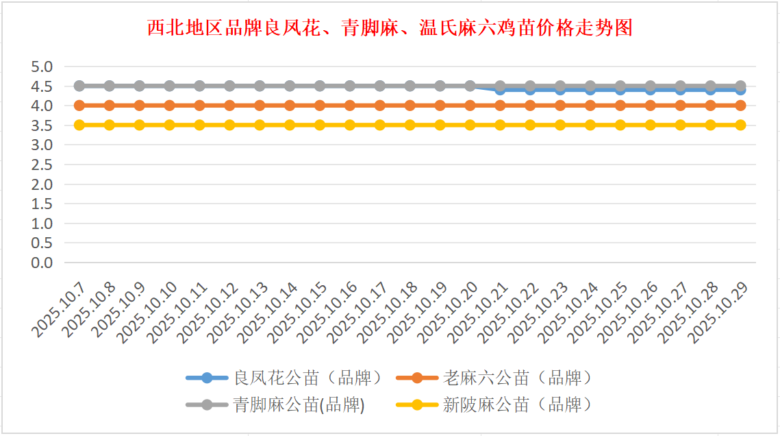 品牌新陂麻:价格稳定,到户价公苗4.50元/羽,稳。