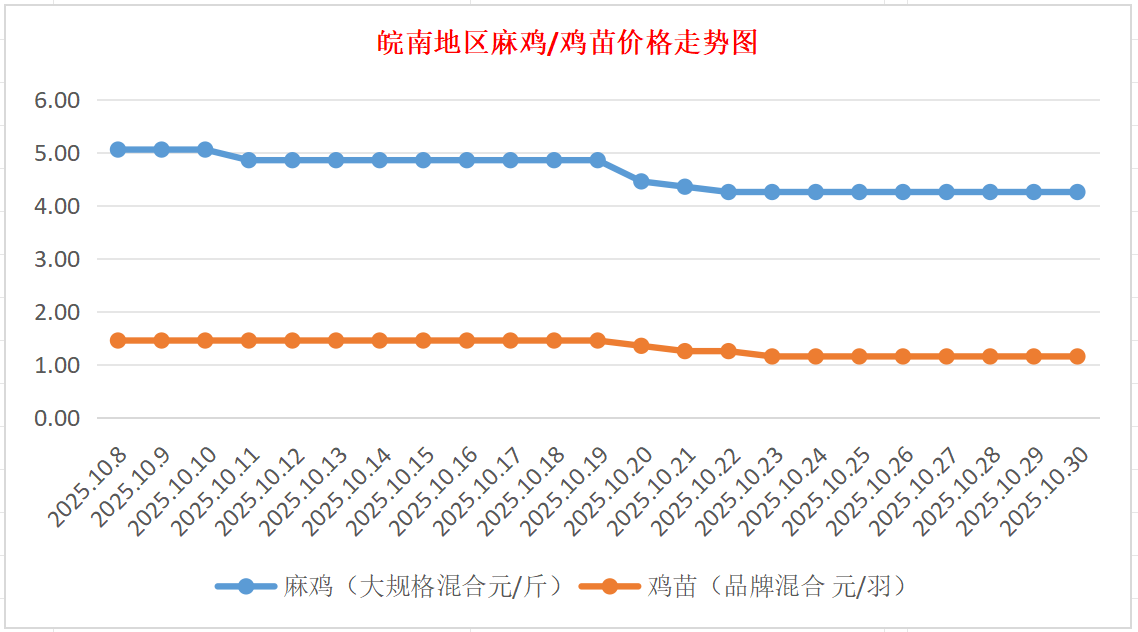 鸡病专业网独家信息:2025年10月30日皖南地区817-麻鸡行情最新走势