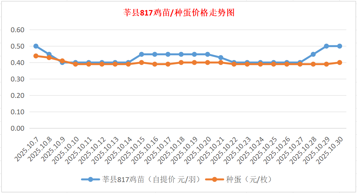 种蛋:昨日种蛋0.39-0.40元/枚。