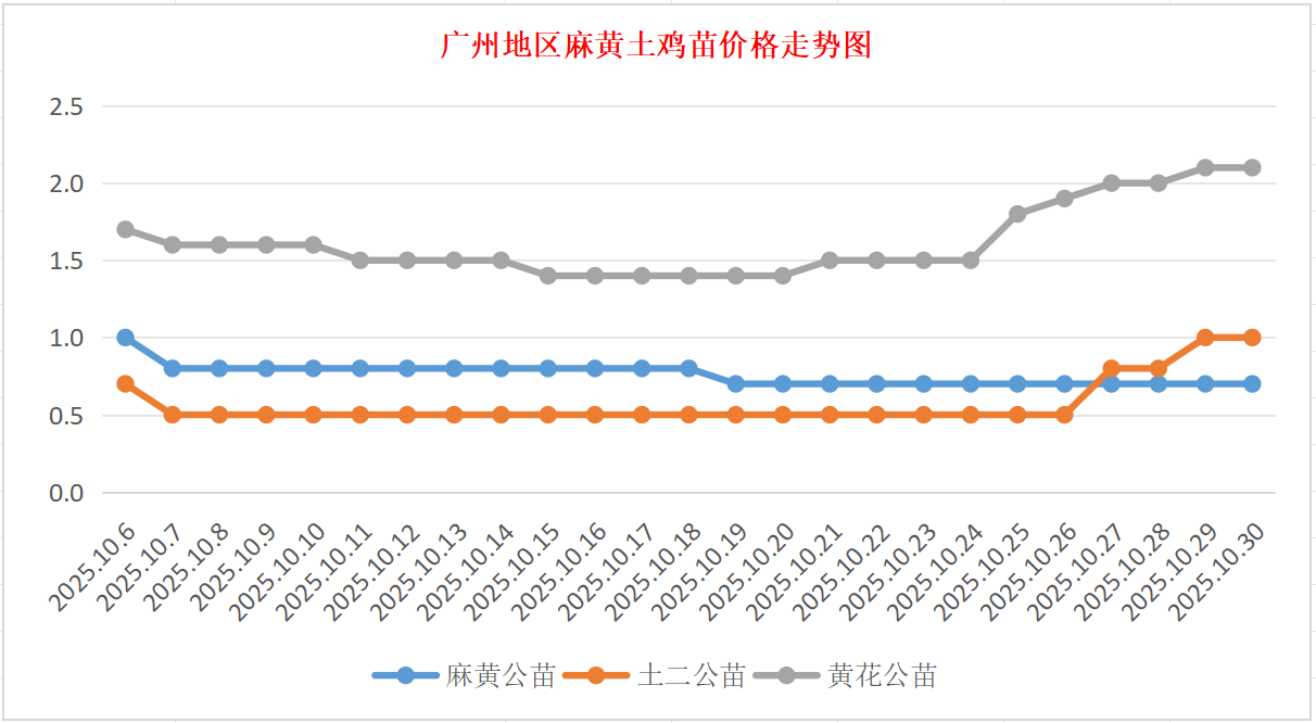 10月30日广州地区麻、黄、土鸡苗价格行情