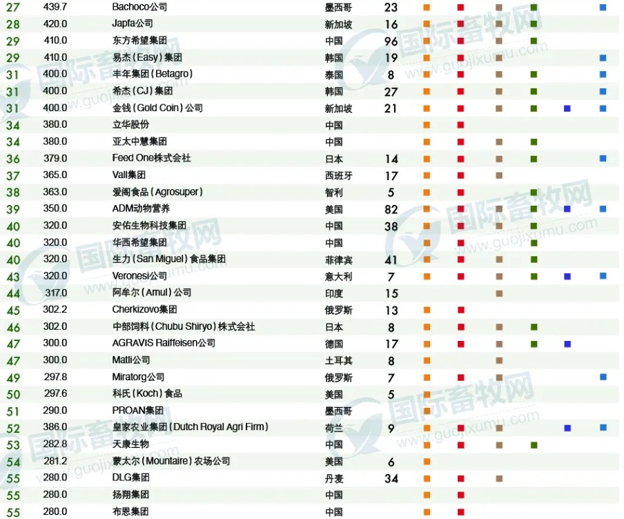 全球146家饲料生产商榜上有名业也从2023年的第60位(260万吨)稳步前进,到2024年成功升至第34位,产量达到380万吨。