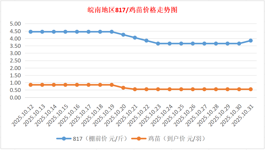 鸡病专业网独家信息:2025年10月31日皖南地区817-麻鸡行情最新走势