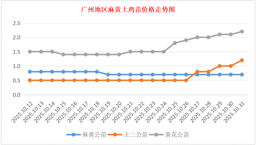 10月31日广州地区麻、黄、土鸡苗价格行情