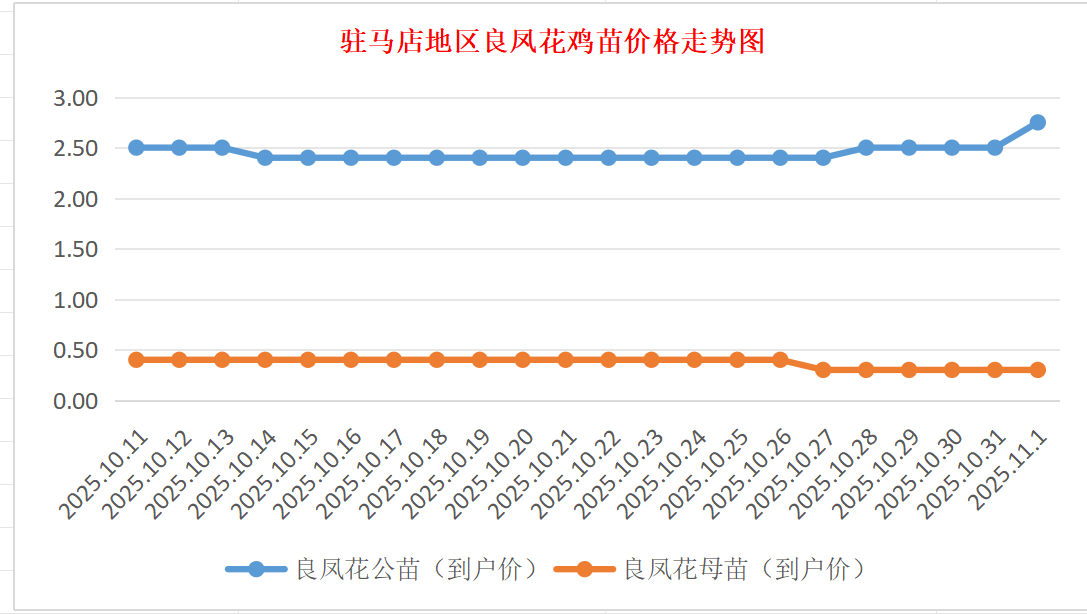 11月1日驻马店地区良凤花、岭南黄鸡苗价格行情