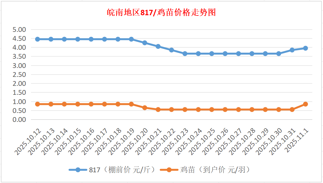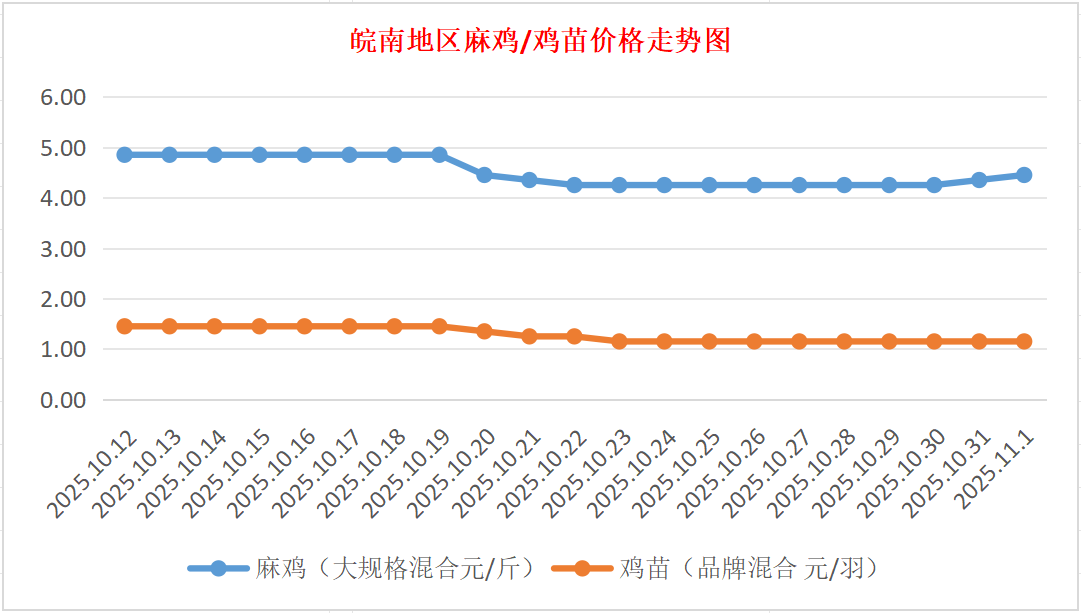 鸡病专业网独家信息:2025年11月1日皖南地区817-麻鸡行情最新走势