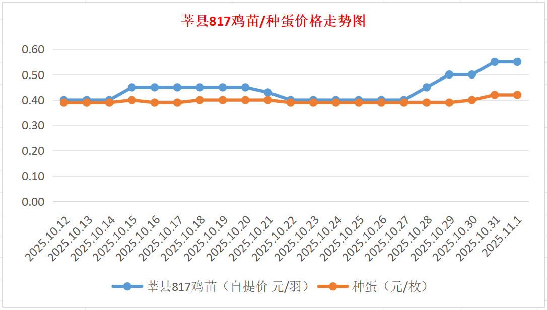种蛋:昨日种蛋0.41-0.42元/枚。