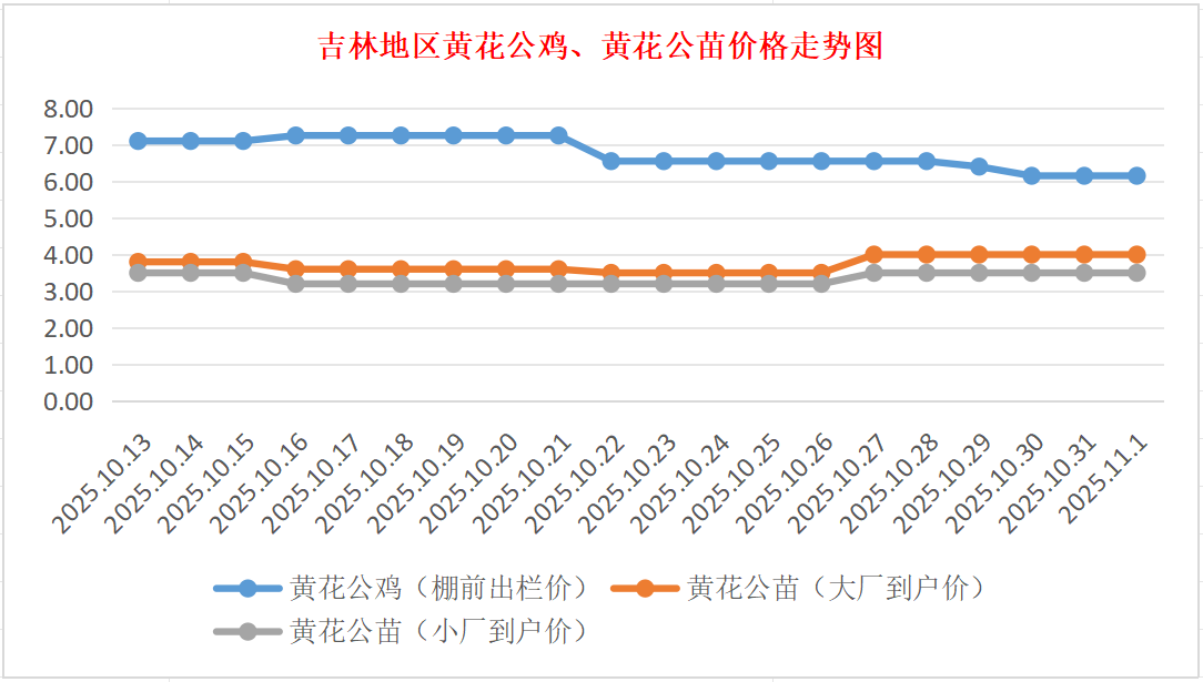 11月1日吉林黄花公鸡、鸡苗价格行情