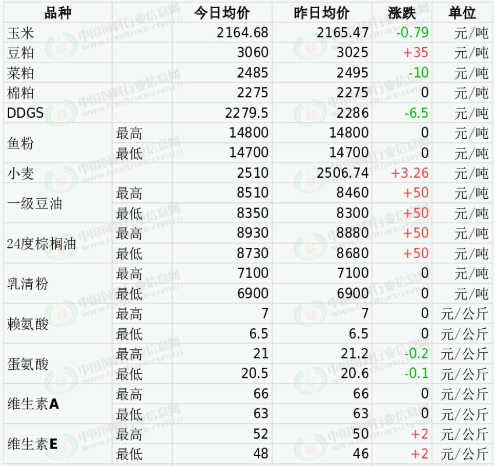 2025年10月31日国内饲料原料行情汇总