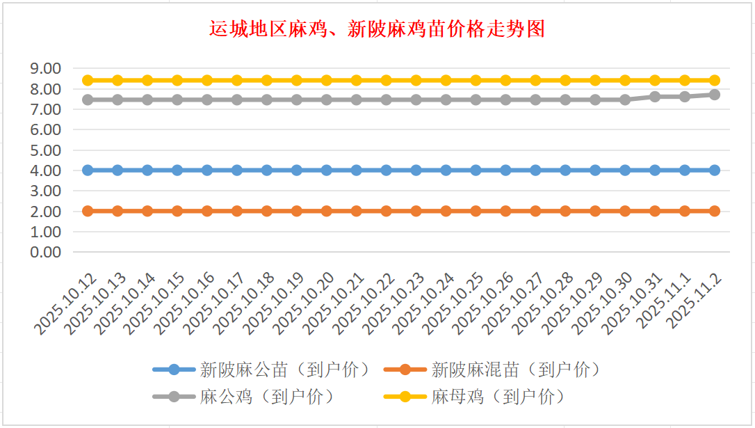 运城地区麻鸡、新陂麻鸡苗价格走势图(来源:鸡病专业网)