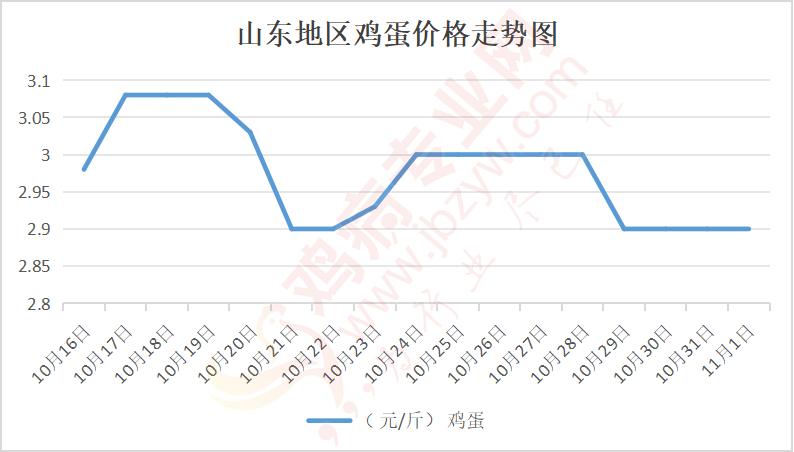 鸡病专业网消息:11月1日,山东地区莱阳鸡蛋2.95元/斤,稳;青岛鸡蛋2.95元/斤,稳;诸城鸡蛋2.9元/斤,稳;安丘鸡蛋2.8元/斤,稳;昌乐鸡蛋2.8元/斤,稳;寿光鸡蛋2.8元/斤,稳;昌邑鸡蛋2.8元/斤,稳;高密鸡蛋2.9元/斤,稳;青州鸡蛋2.8元/斤,稳;临朐鸡蛋2.8元/斤,稳;莱州鸡蛋2.95元/斤,稳;威海鸡蛋2.95元/斤,稳;临沭鸡蛋2.8元/斤,稳;沂水鸡蛋2.8元/斤,稳;沂南鸡蛋2.8元/斤,稳;莒南鸡蛋2.8元/斤,稳;兰陵县鸡蛋2.8元/斤,稳;日照鸡蛋2.8元/斤,稳;莒县鸡蛋2.8元/斤,稳;日照辛萁商贸鸡蛋2.8元/斤,稳;泗水鸡蛋价格81元/30斤,稳;济宁、汶上鸡蛋价格81元/30斤,稳;梁山、东平红蛋价格81元/30斤,稳;枣庄滕州地区鸡蛋混码主流到户83元/30斤,稳;泰安地区新泰鸡蛋价格81元/30斤,稳;菏泽地区曹县主流到户81元/30斤,稳;成武鸡蛋价格81元/30斤,稳;单县到户81元/30斤,稳;聊城莘县80元/30斤,稳。
