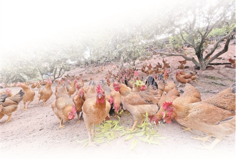 自然放养的灵山香鸡。园丰集团供图