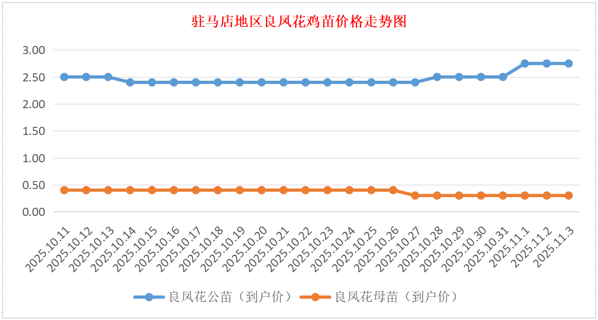 11月3日驻马店地区良凤花、岭南黄鸡苗价格行情