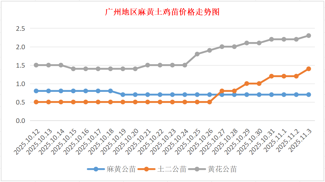 11月3日广州地区麻、黄、土鸡苗价格行情