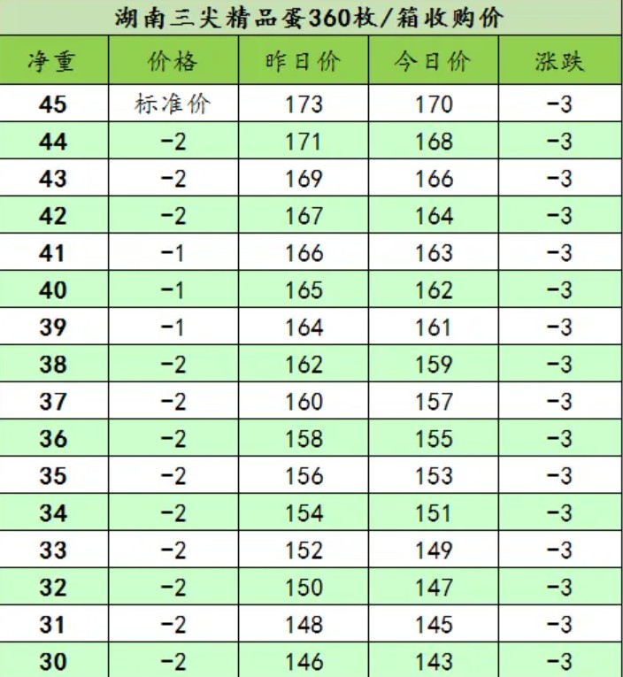 2025年11月3日湖南三尖农牧鸡蛋报价
