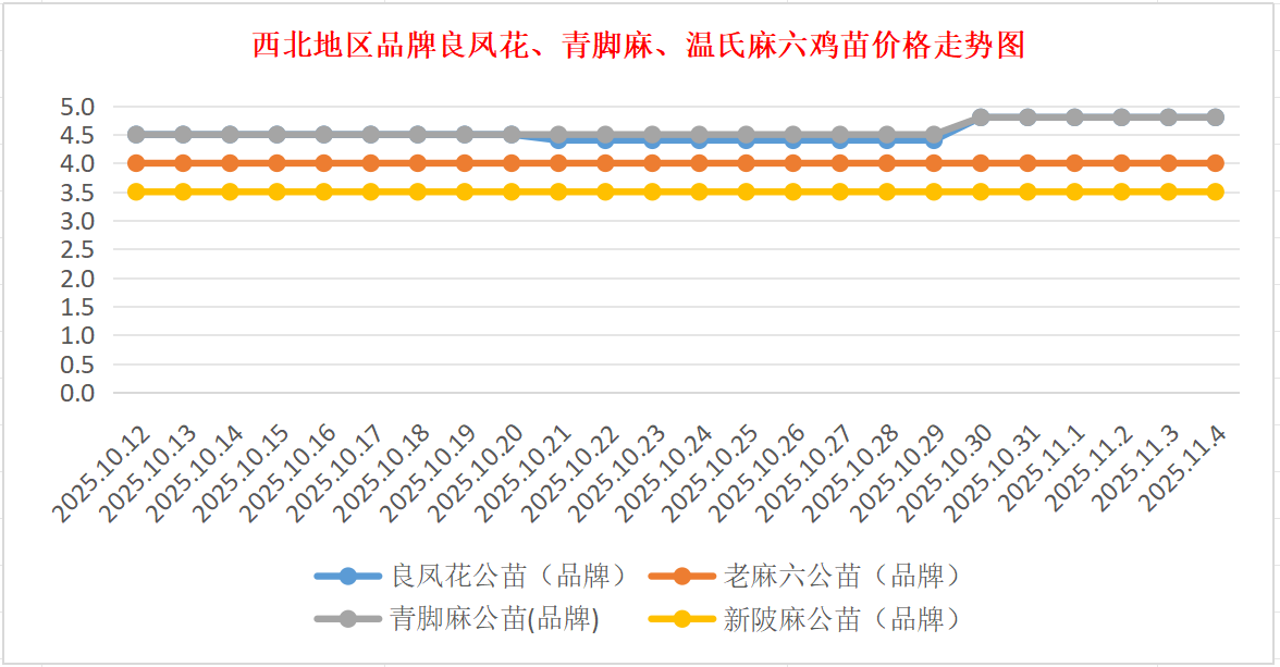 品牌新陂麻:价格稳定,到户价公苗4.50元/羽,稳。