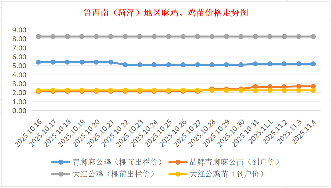 11月4日鲁西南(菏泽)地区麻鸡、鸡苗价格行情