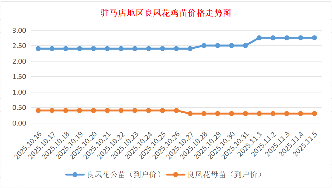 11月5日驻马店地区良凤花、岭南黄鸡苗价格行情