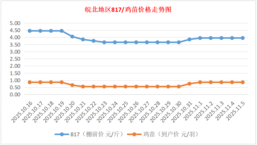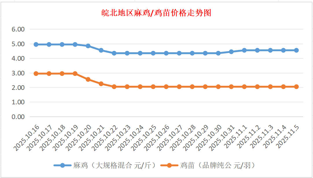 鸡病专业网独家信息:2025年11月5日皖北地区817-麻鸡行情最新走势