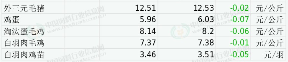 白羽肉毛鸡价格稳中偏弱。市场需求平稳,毛鸡出栏有限,走货趋稳。预计近期肉鸡价格窄幅震荡,有偏强情绪。今日主产区山东白羽肉毛鸡均价7.13元/公斤,较昨日价格下跌0.02;辽宁均价7.30元/公斤,与昨日价格持平;主销区江苏均价8.22元/公斤,较昨日价格下跌0.05。