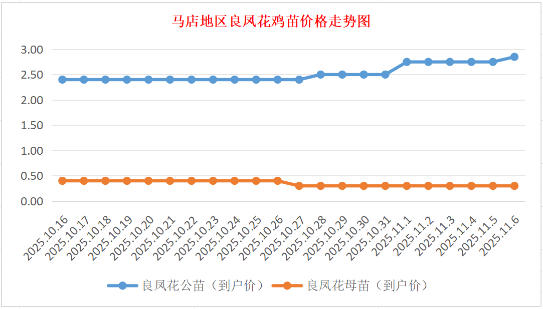 11月6日驻马店地区良凤花、岭南黄鸡苗价格行情