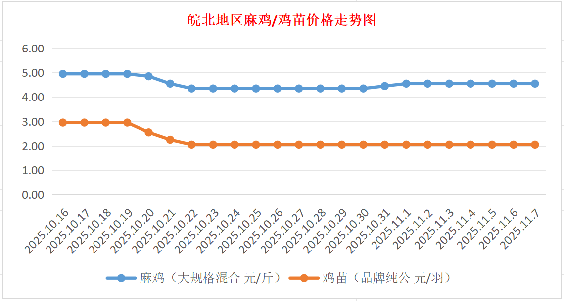 鸡病专业网独家信息:2025年11月7日皖北地区817-麻鸡行情最新走势