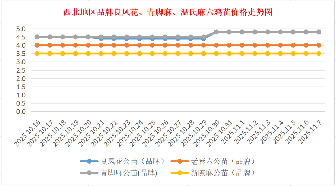 西北地区麻鸡苗价格走势图(来源:鸡病专业网)