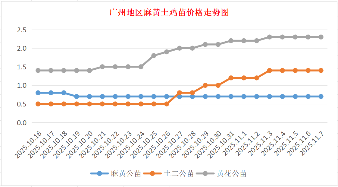 11月7日广州地区麻、黄、土鸡苗价格行情