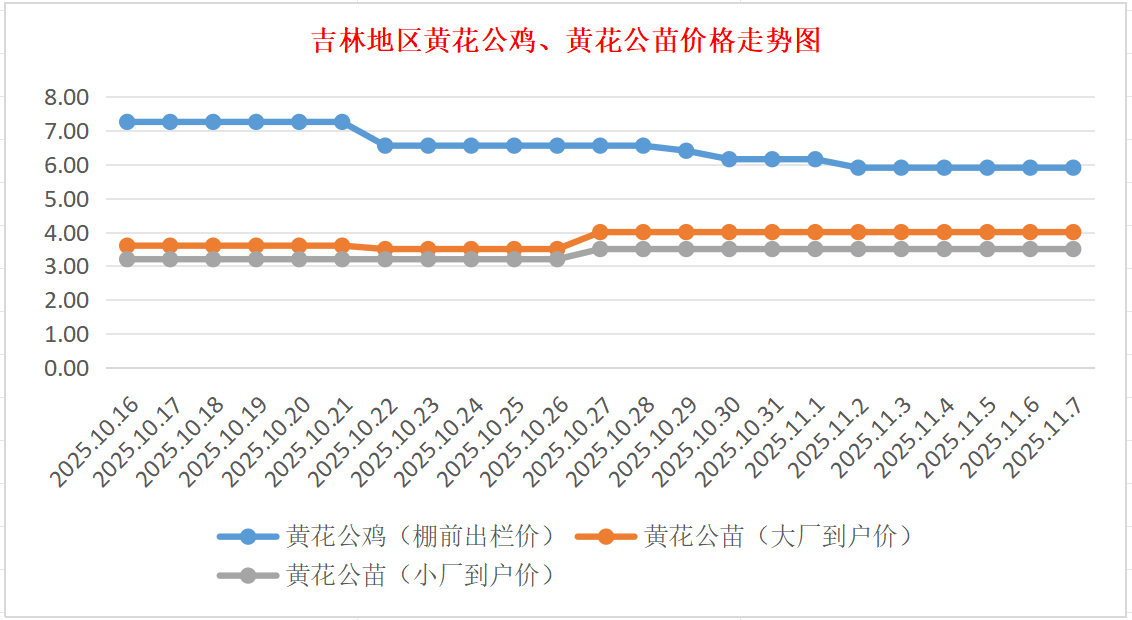 11月7日吉林黄花公鸡、鸡苗价格行情