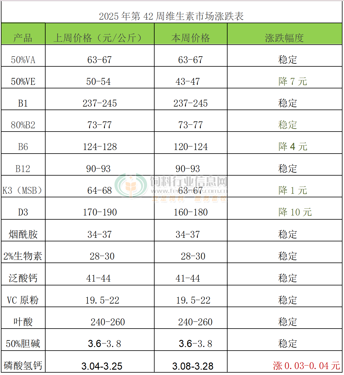 2025年第42周维生素市场动态