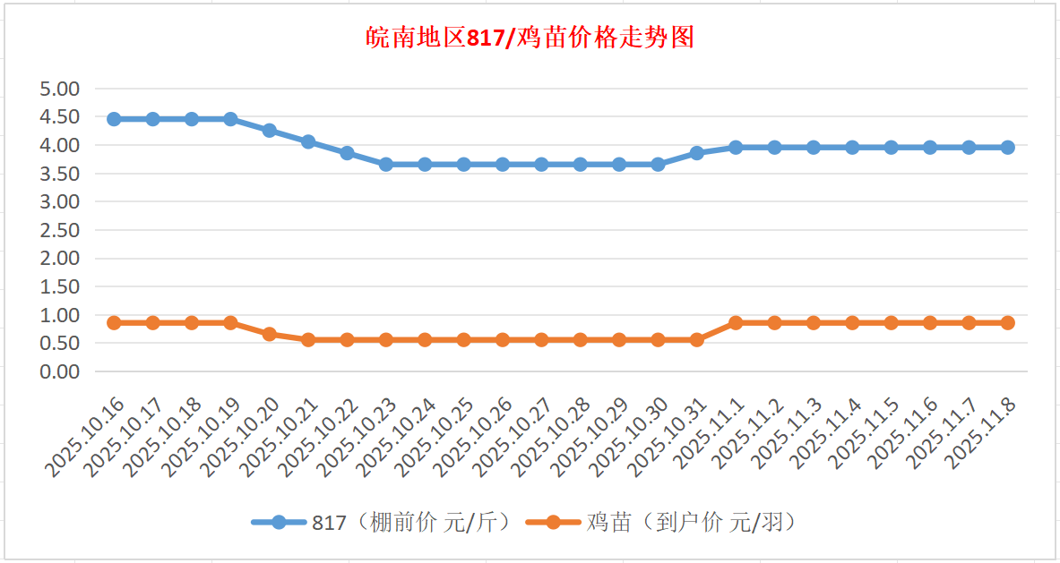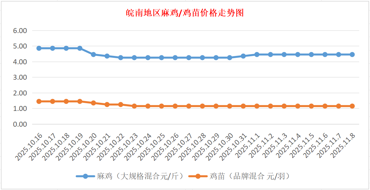 鸡病专业网独家信息:2025年11月8日皖南地区817-麻鸡行情最新走势
