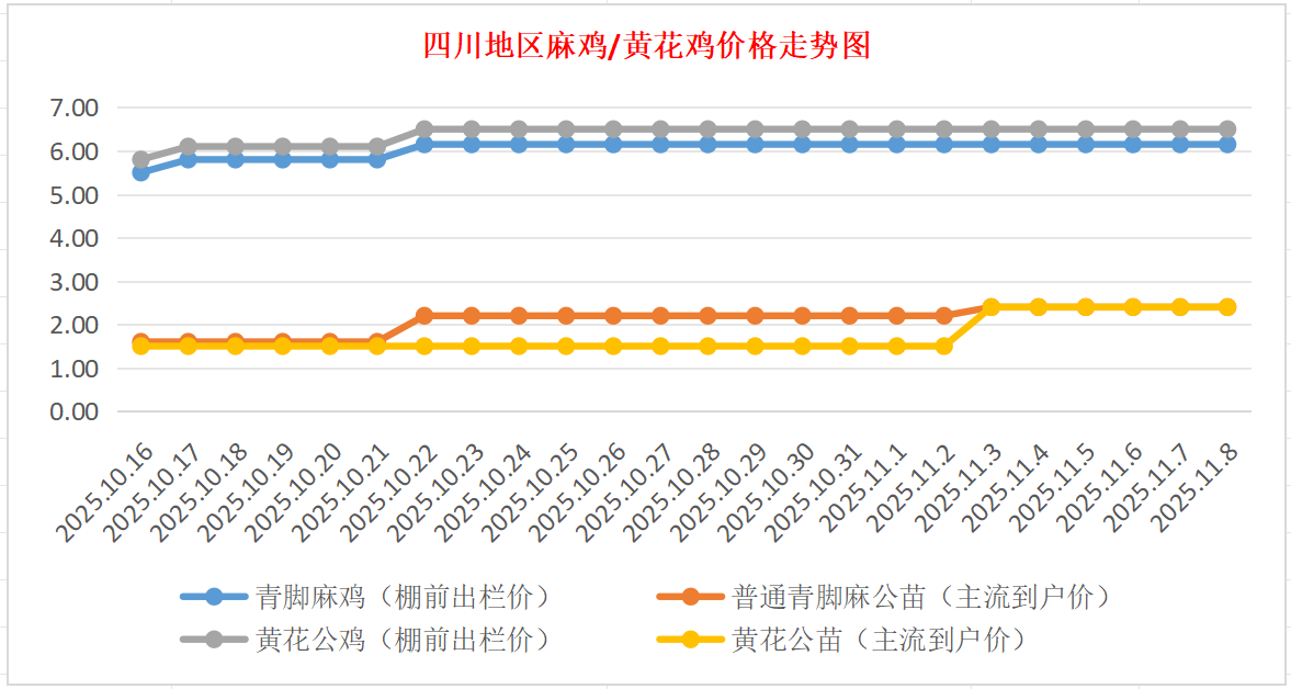 四川地区麻鸡/黄花公价格走势图(来源:鸡病专业网)