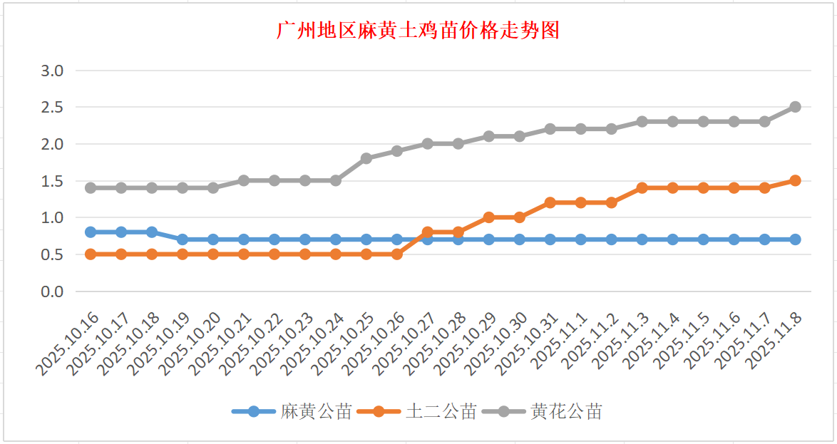 11月8日广州地区麻、黄、土鸡苗价格行情