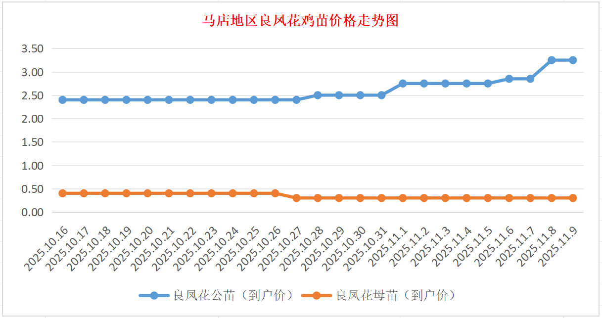 11月9日驻马店地区良凤花、岭南黄鸡苗价格行情