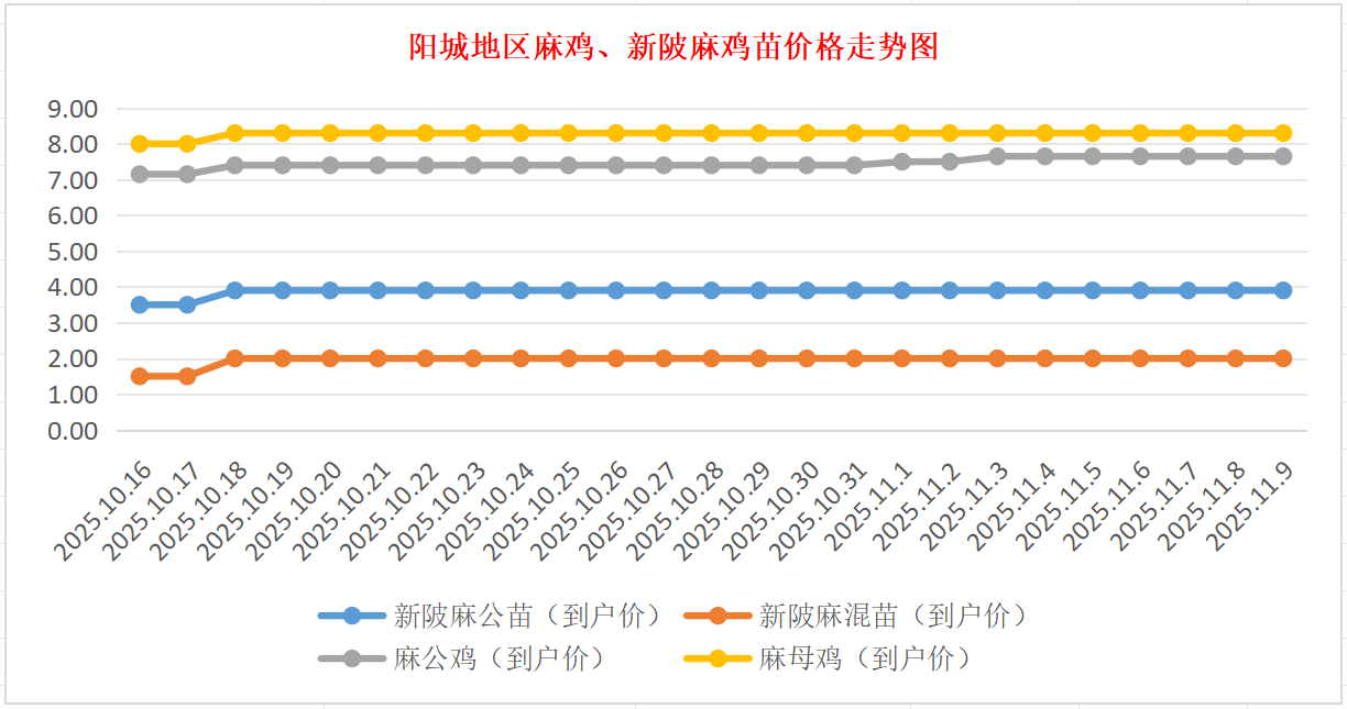 阳城地区麻鸡、新陂麻鸡苗价格走势图(来源:鸡病专业网)
