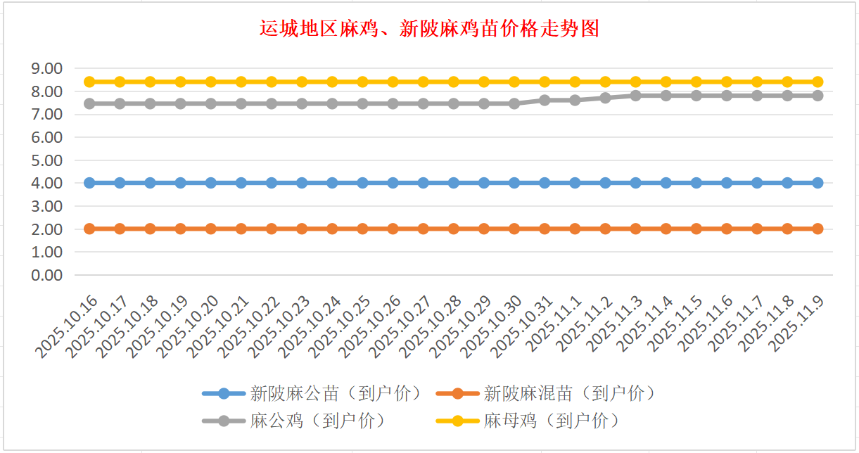 运城地区麻鸡、新陂麻鸡苗价格走势图(来源:鸡病专业网)