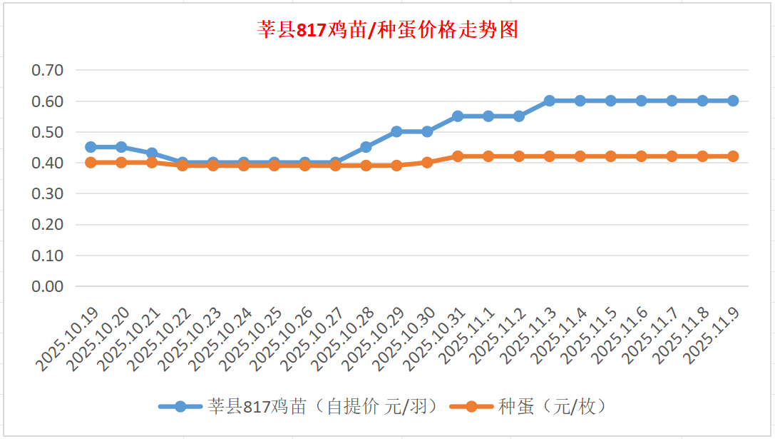 种蛋:昨日种蛋0.41-0.42元/枚。