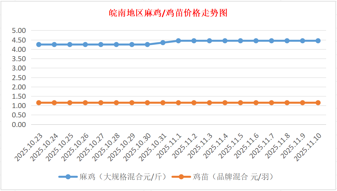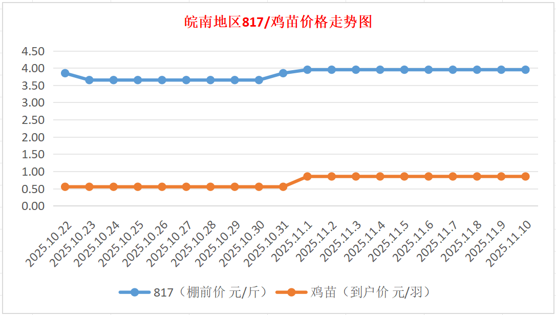 鸡病专业网独家信息:2025年11月10日皖南地区817-麻鸡行情最新走势