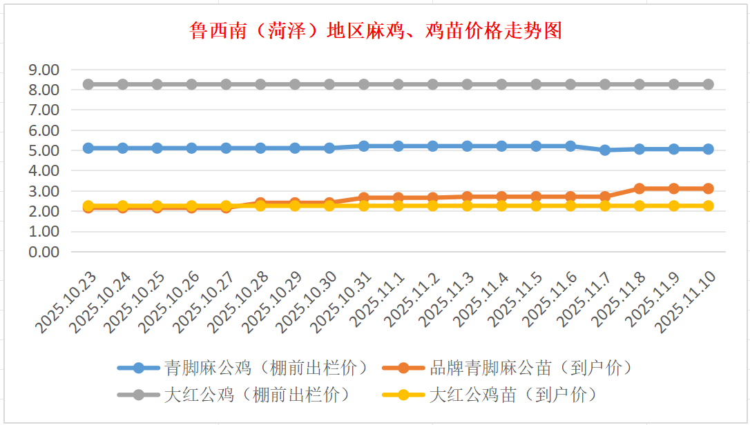 11月10日鲁西南(菏泽)地区麻鸡、鸡苗价格行情