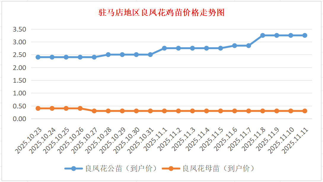 11月11日驻马店地区良凤花、岭南黄鸡苗价格行情
