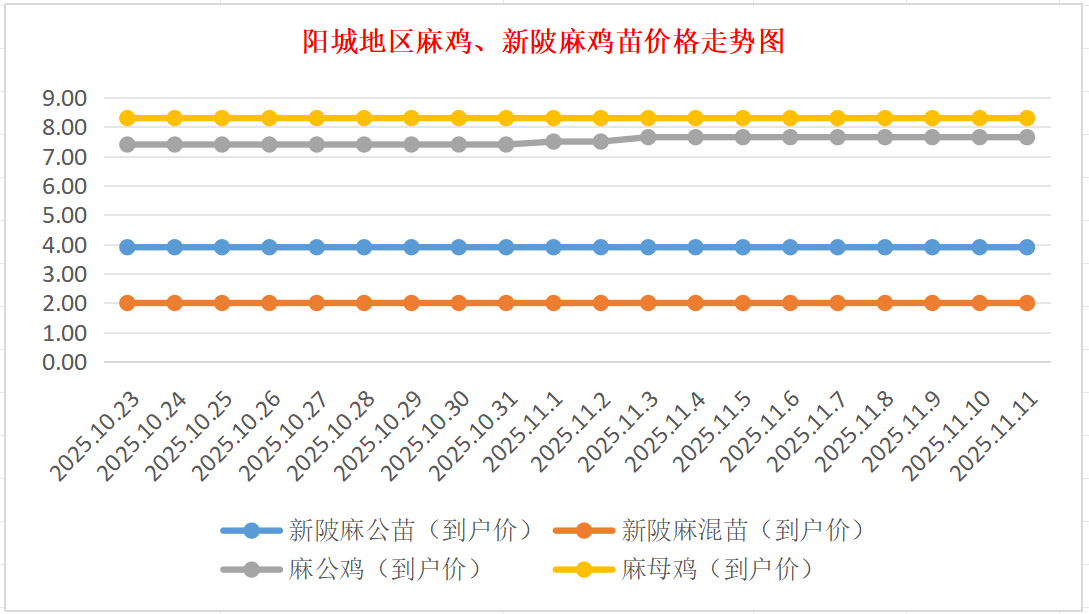 阳城地区麻鸡、新陂麻鸡苗价格走势图(来源:鸡病专业网)