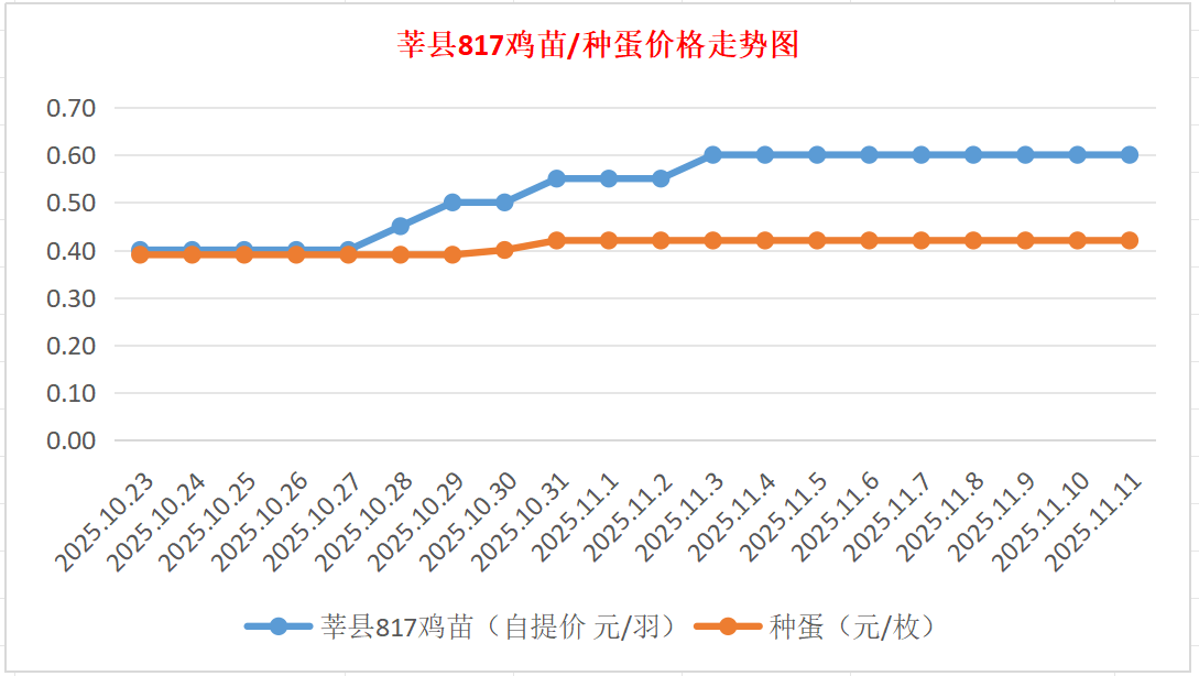 种蛋:昨日种蛋0.41-0.42元/枚。