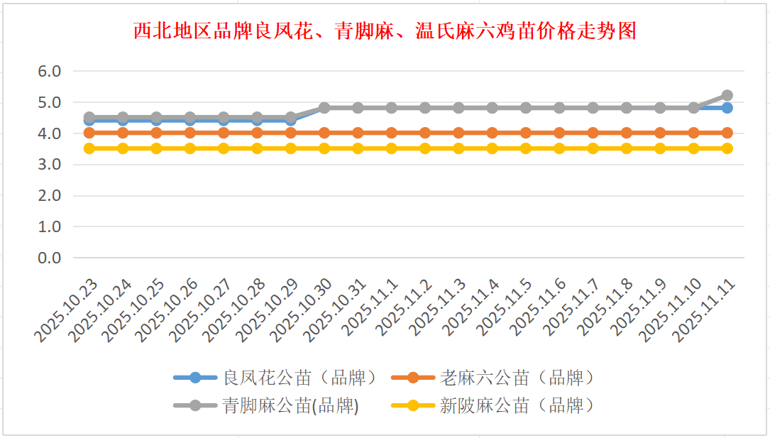 西北地区麻鸡苗价格走势图(来源:鸡病专业网)